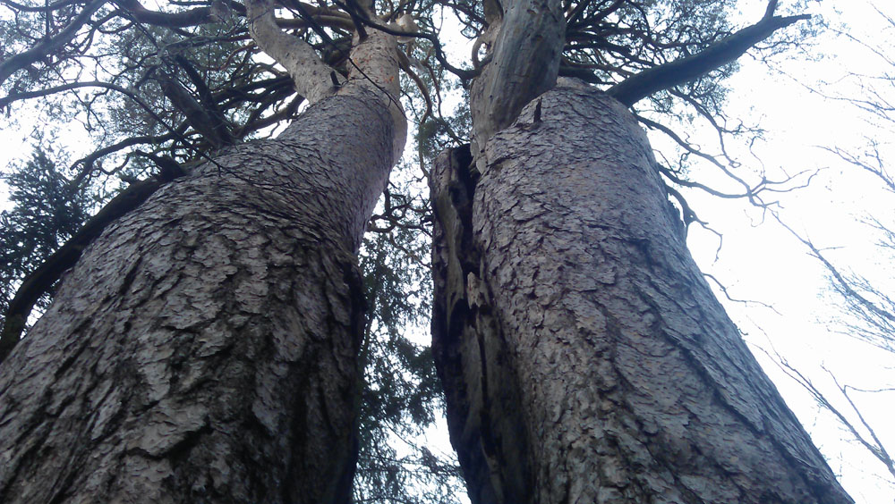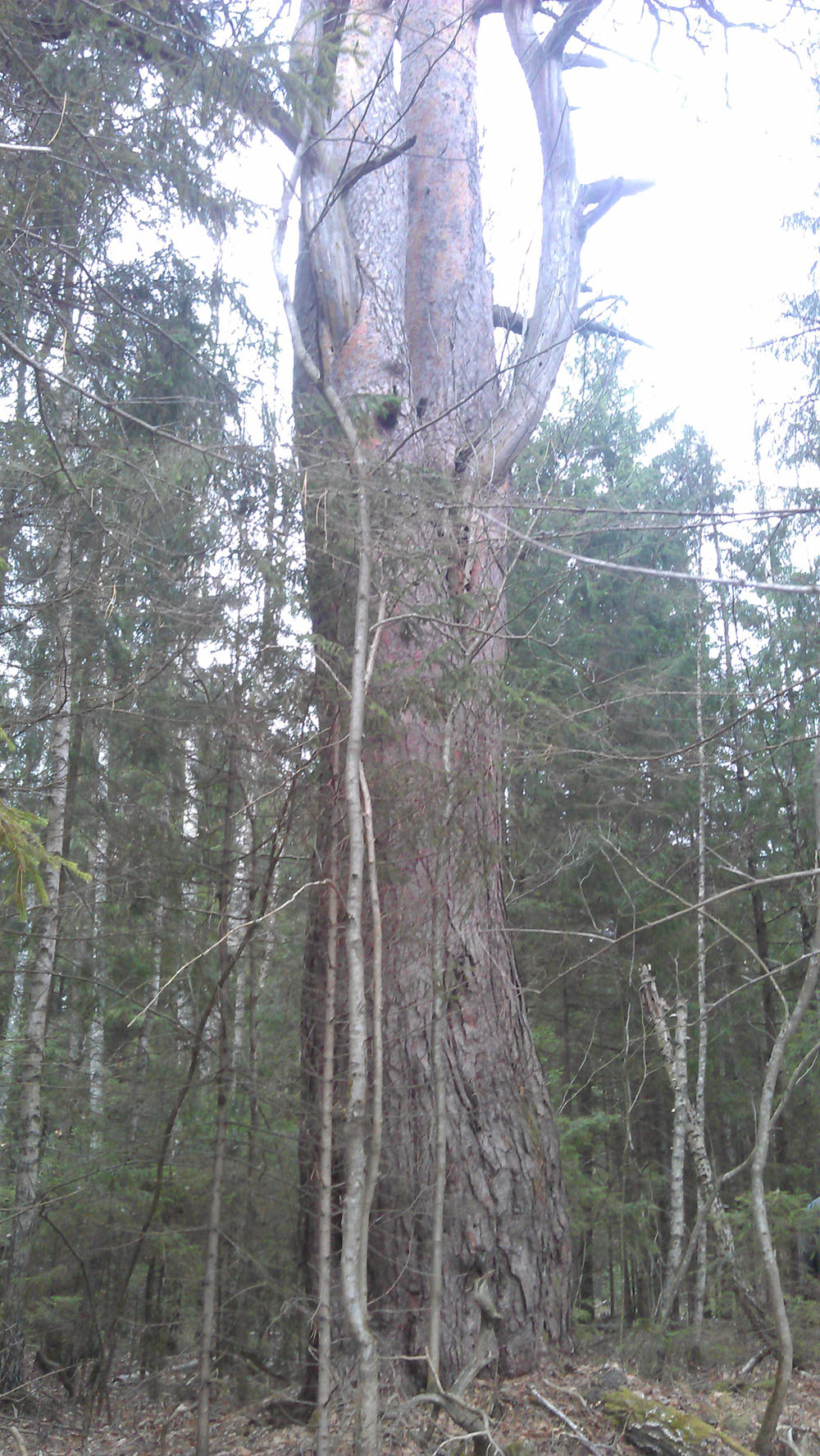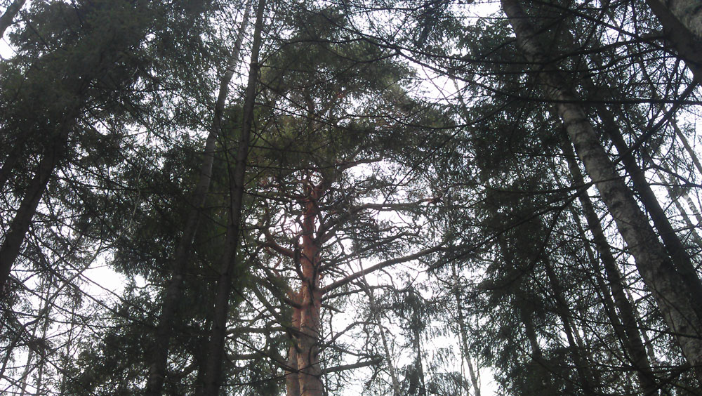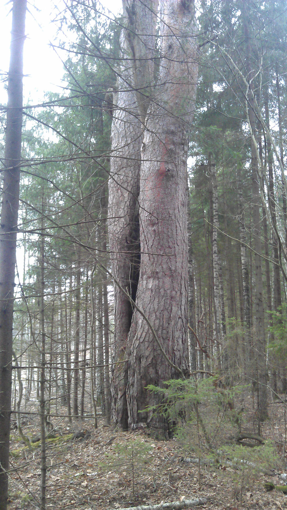 Разочарованные поисковики (несомненно, раскатавшие носы на битком набитую золотом воловью шкуру) решили подсунуть эту историю мне. На самом деле, не самое плохое решение. В случае успеха они могли законно претендовать на 10% от добычи, не ударив пальцем о палец. В общем, так или иначе, но наша поисковая группа оказалась в глухих смоленских лесах в середине ноября 20** года. Стоял довольно крепкий морозец, но снега ещё не было, что сильно облегчало передвижение по сильно заросшему лесу. Громадную, раздвоенную сосну, буквально царящую над окружающей местностью, мы отыскали довольно быстро, благо лес давно лишился листвы, и видимость была просто идеальной. Но найдя её, я начал сильно сомневаться в том, что это - то самое дерево.