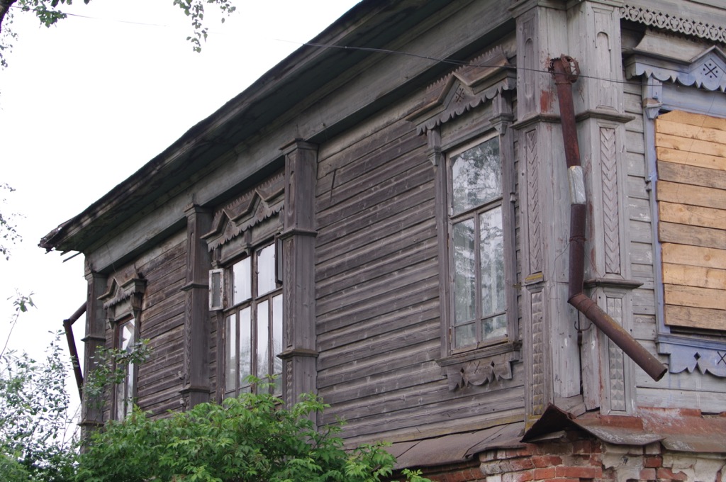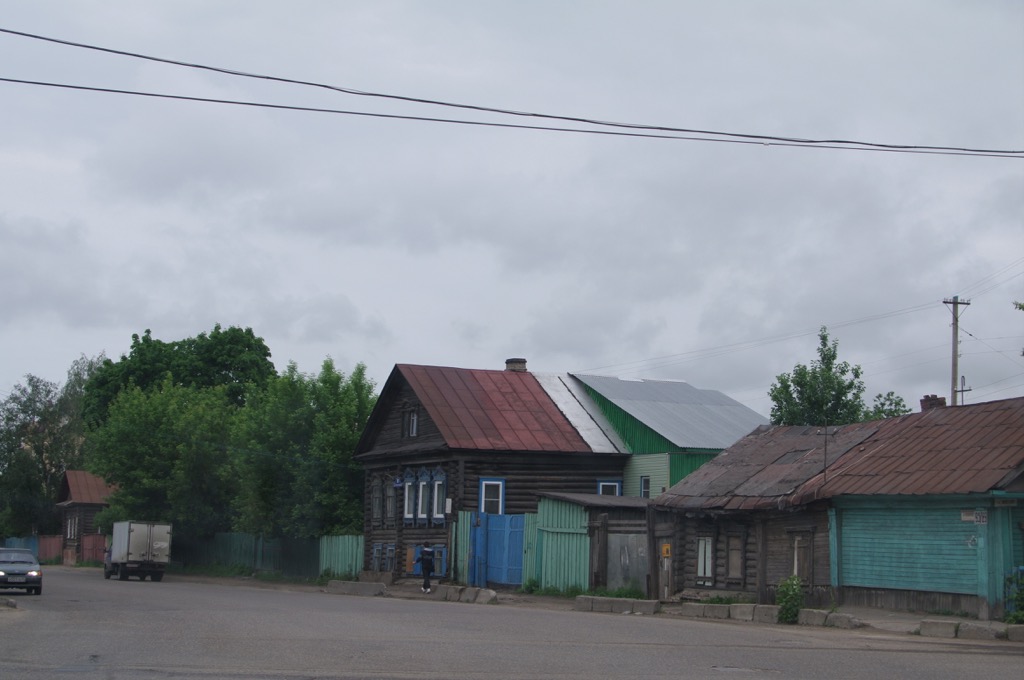 После Судиславля, где в прошлом году мы ремонтировали Патриот Саши, дорога стала гораздо хуже, местами - просто ужасна, хотя нельзя сказать, что ее не чинят совсем, чинят, но как-то очень вяло, засыпая громадные выбоины асфальтом. В Судиславле остановились на несколько минут пофотографировать. Городок в основном деревянный, я очень люблю такие города – хотя и красиво, но в тоже время очень грустно становится, когда видишь все это. Хорошо бы съездить туда специально, правда, далековато, километров 400 от Москвы.