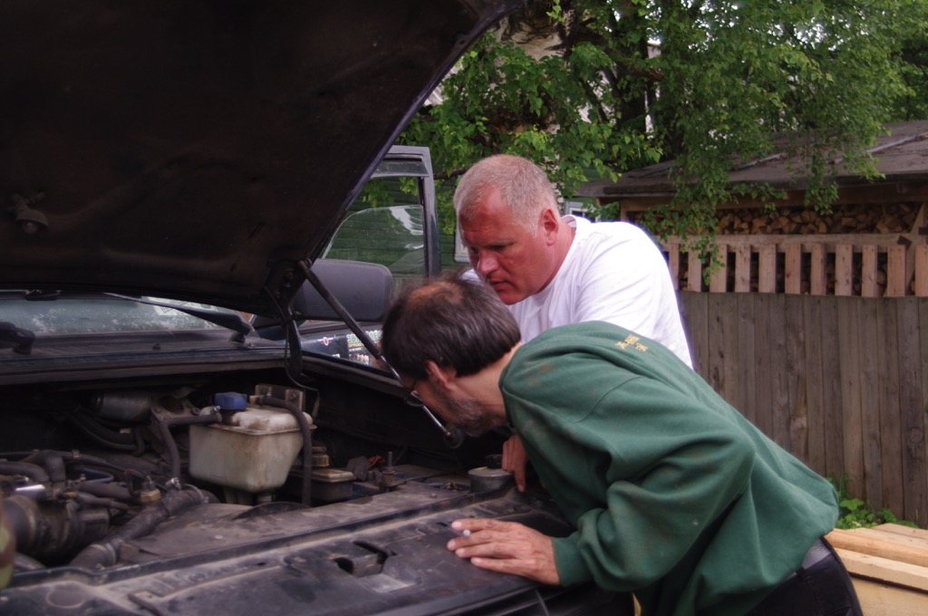 Встреча в Кологриве, ровно год спустя. Что делают водители Патриотов прежде всего? Конечно же - заглядывают под капот, есть в этом необходимость или нет, но заглянуть туда - святое дело!