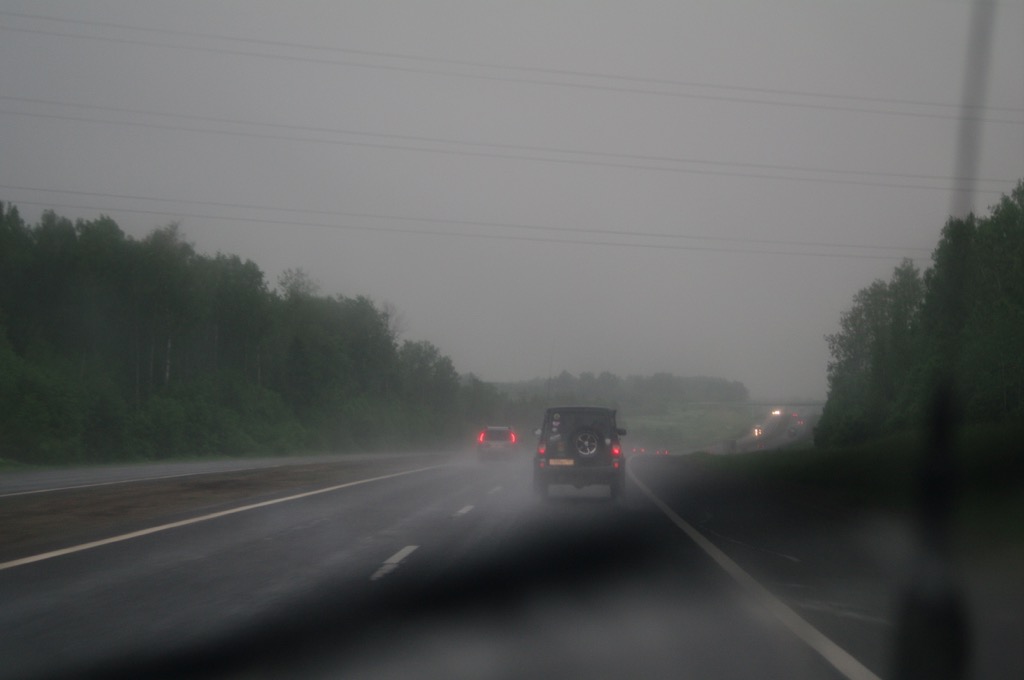 Почти 300 км шел дождь, но потом после Костромы погода стала налаживаться.