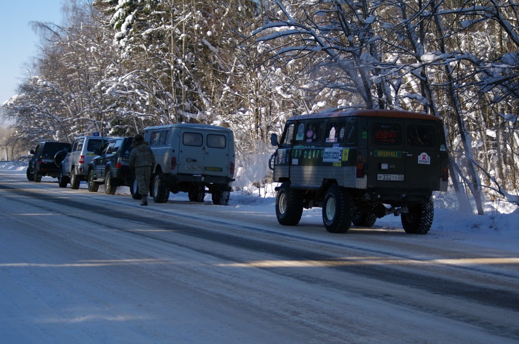 А минут через 15 и четыре экипажа "Бродяг" подоспели. Алексей "Лелик" и Сергей "хохол" - на буханках, а Саня "tukalex" и Вова "belazik" - по зимнему варианту, на Прадиках. А Витя Журавлев - вообще, овощем