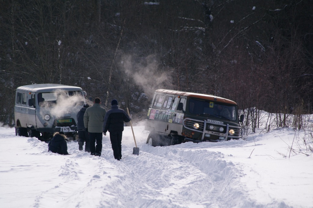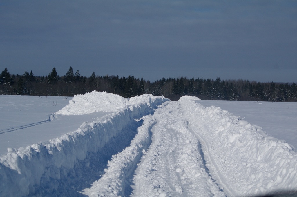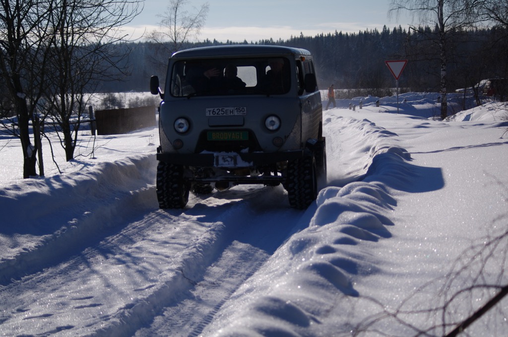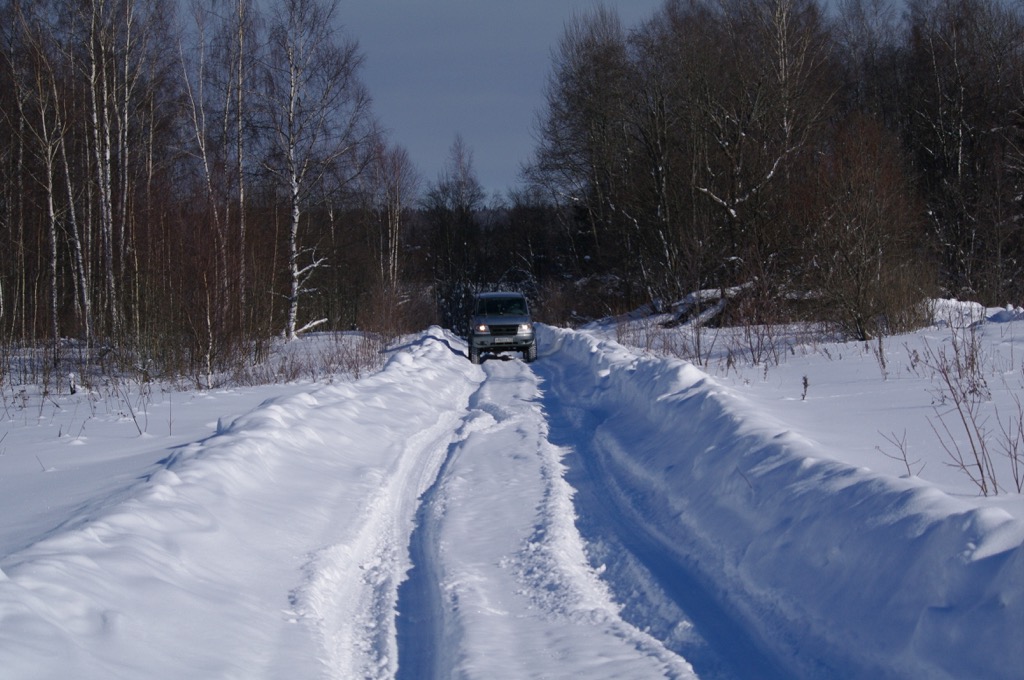 Но нас же много! А также есть "тяжелая техника" в лице двух "буханок". Поэтому трогаемся, доезжаем до Дурыкина и видим, что объездная худо-бедно, но почищена.