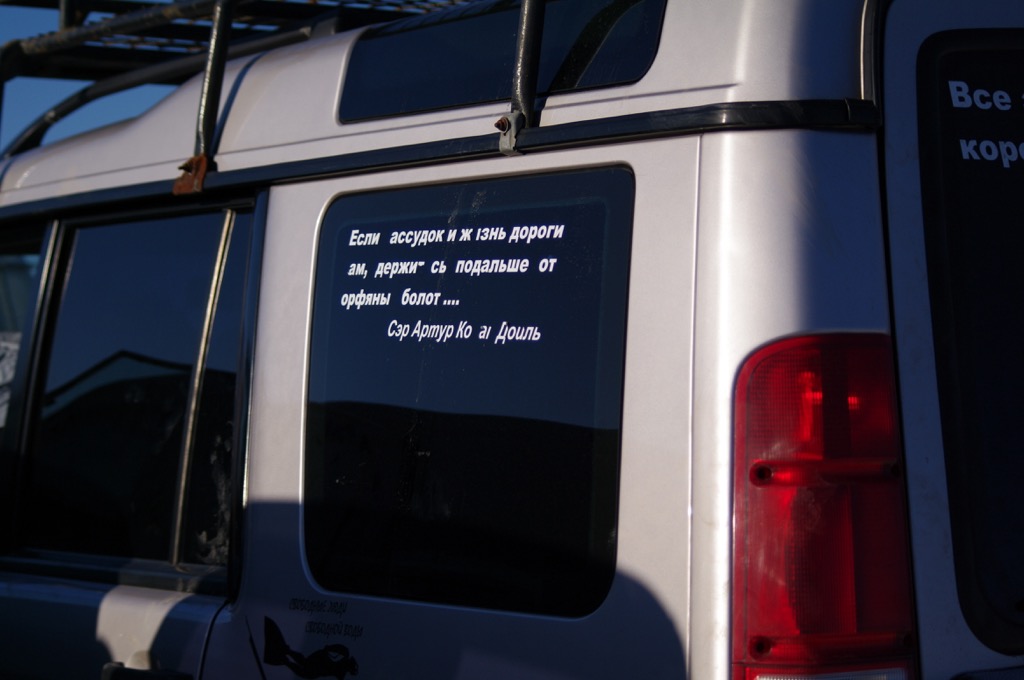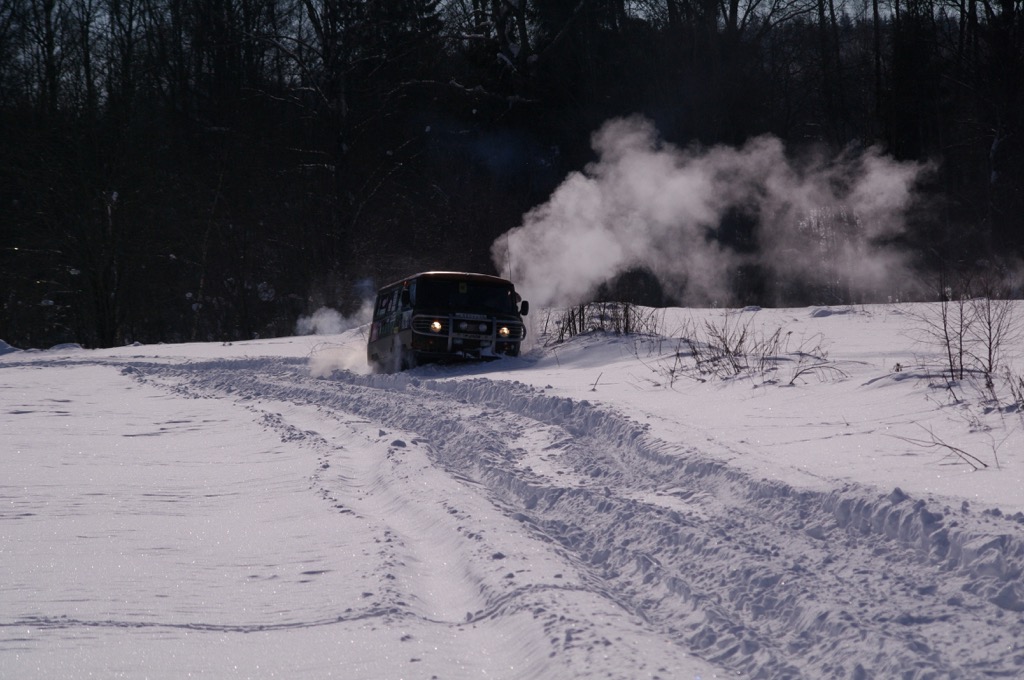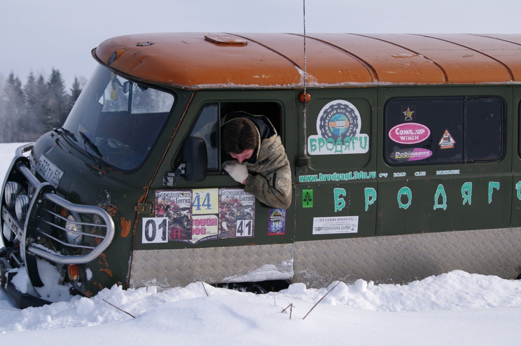 Итак, стоим, ждем основную колонну. Периодически созваниваемся, конечно, встречу назначили рановато, они только проезжают Можайск, а попутно и на Бородинское поле хотят заехать. Но нам не скучно и не холодно - набиваемся в "буханку" Сергея.