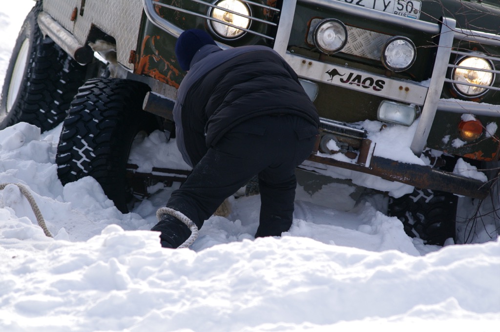 Но... то ли блокировки не той системы, то ли снега действительно много, но машину он засаживает