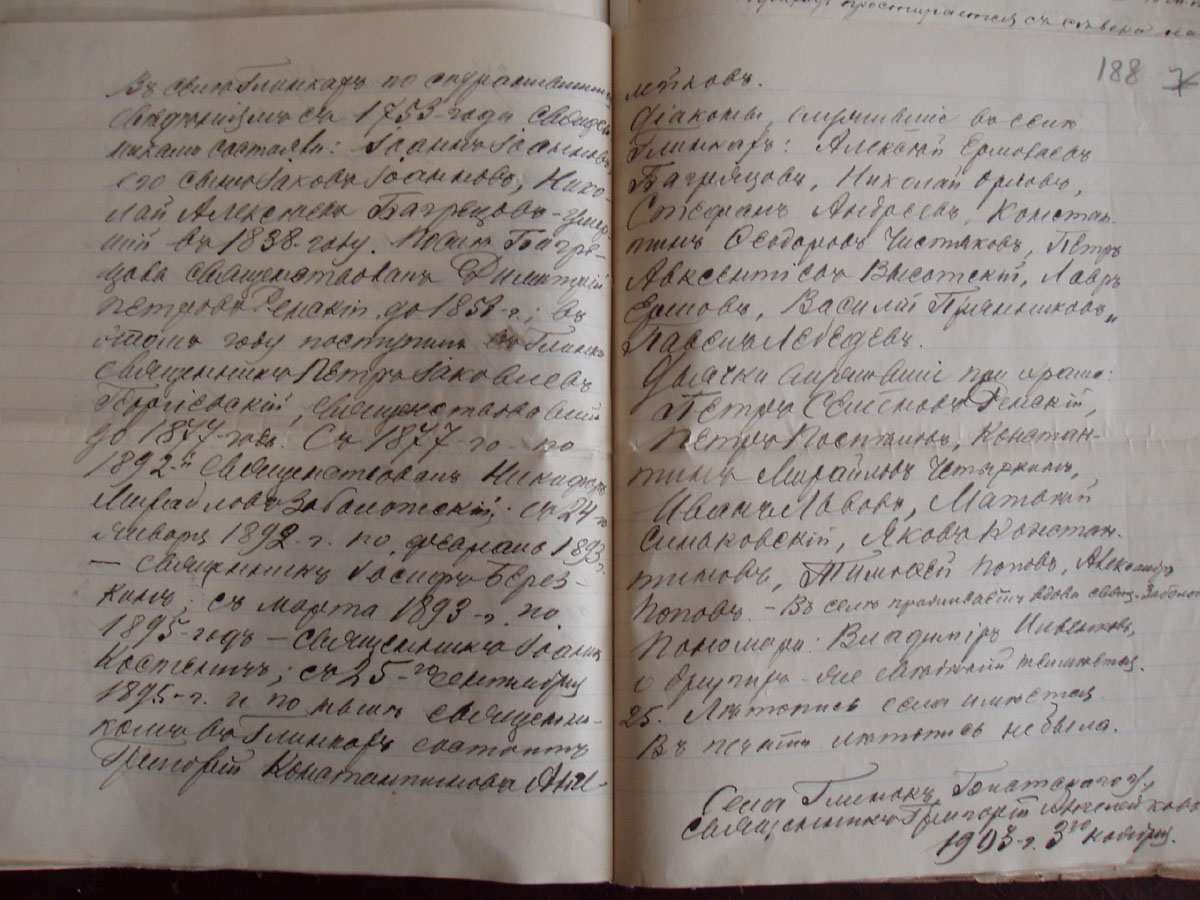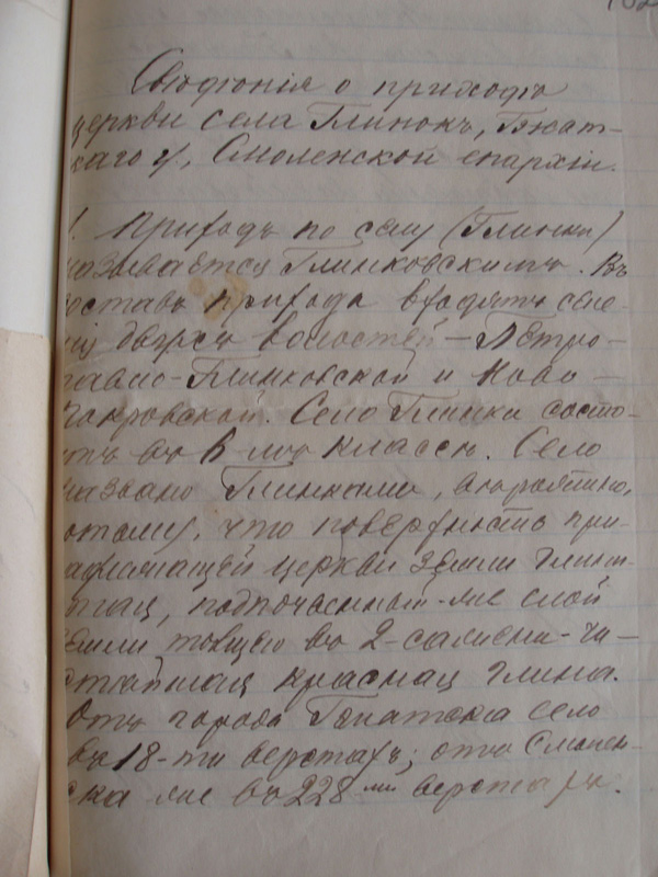 Сведения о приходе церкви села Глинок Гжатского уезда Смоленской епархии