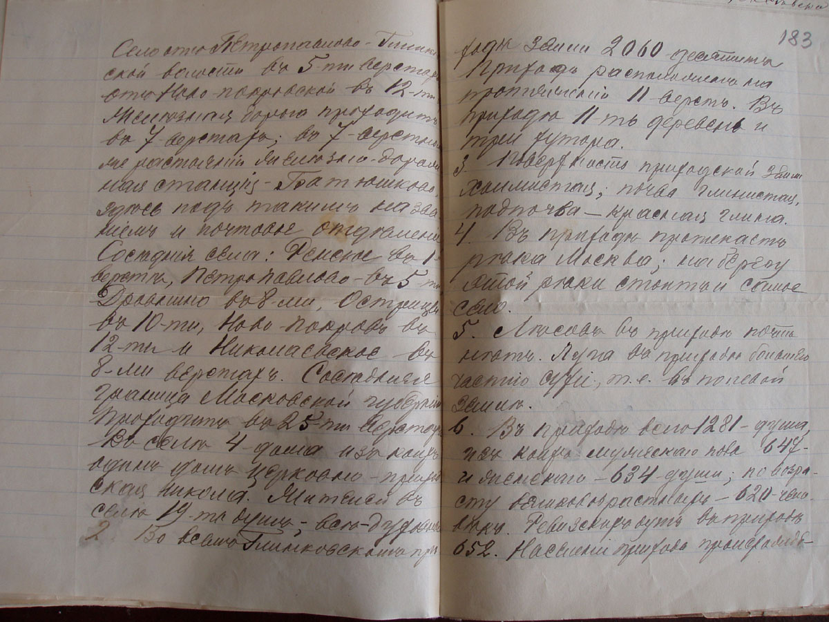 «Вёрстах в 8 - 10 к с-з от Батюшкова расположено с. Глинки - весьма древне, встречающееся ещё в грамоте кн. Ростислава Мстиславича под именем "Высшее Глинско" - под этим же именем оно встречается в духовной книге Дмитрия Донского 1389 года, теперь здесь происходит ярмарка».