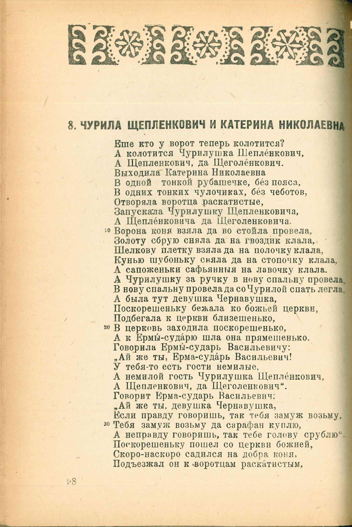 Былины впервые были опубликованы в книге «Былины П.И. Рябинина-Андреева», изданной в Петрозаводске в 1939 году и переизданной в 1940-м. Несколько страниц с текстом былины о Чуриле из последнего издания мы и предлагаем вашему вниманию. В этом варианте былины Чурила — однозначно Щепленкович!