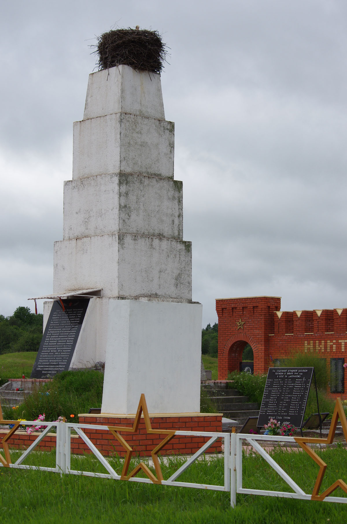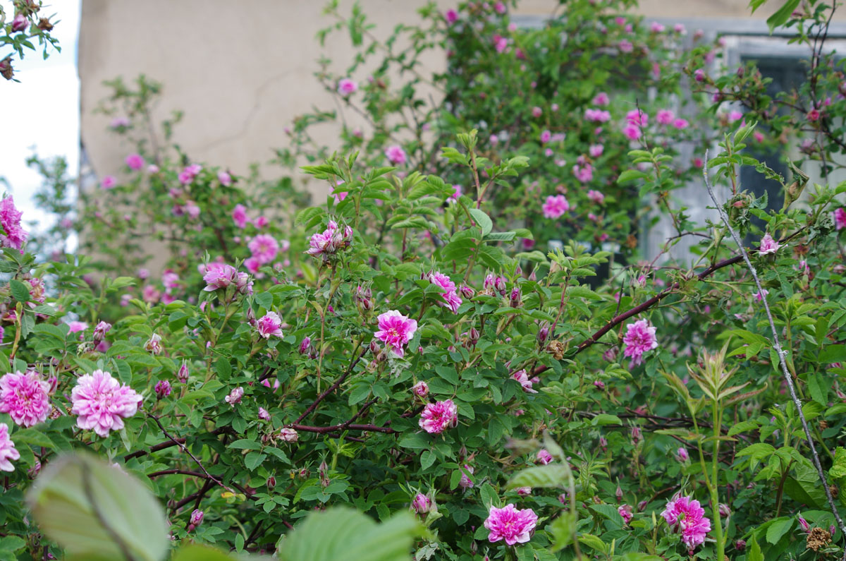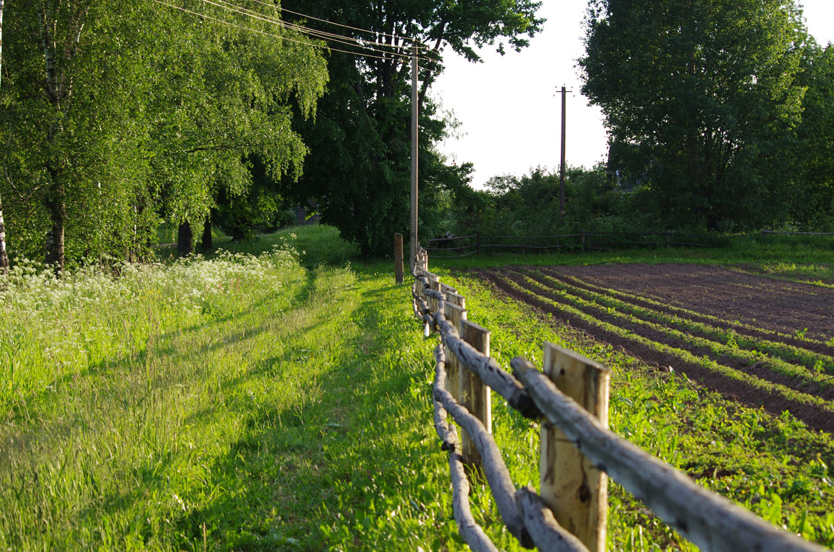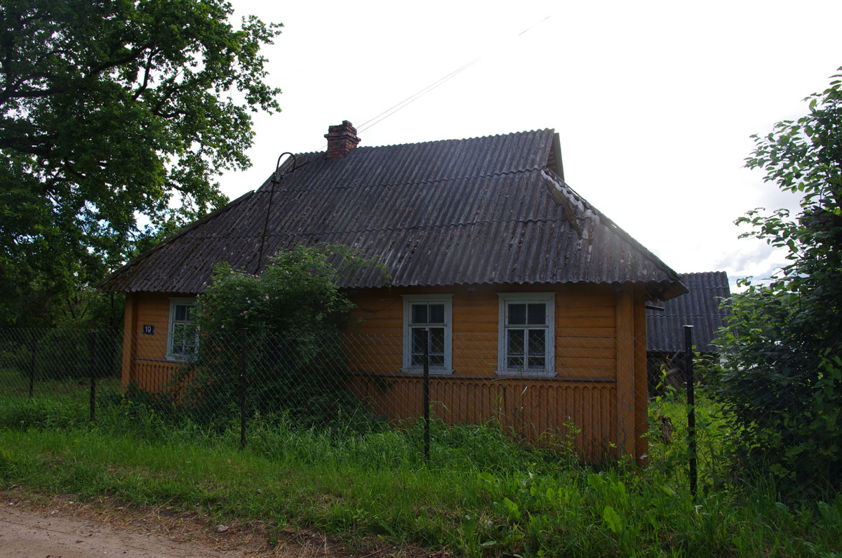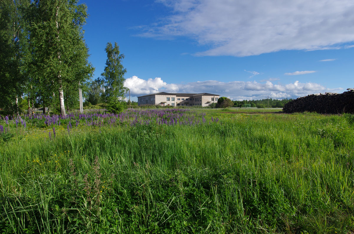 Деревня… При въезде поразили многоквартирные дома с заложенными кирпичом окнами, жуткое зрелище. Это был поселок торфозаготовителей, добыча торфа прекратилась — и вот они, последствия. Но дальше, за поселком, — деревня как деревня, с палисадниками, цветущими пионами в них.