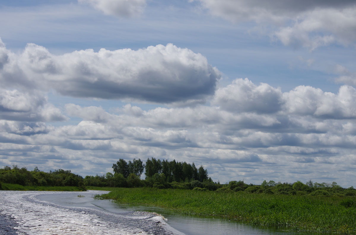 Сделав небольшой круг по озеру, чтобы мы могли оценить весь водный простор, возвращаемся к устью Цевлы и высаживаемся на берег.