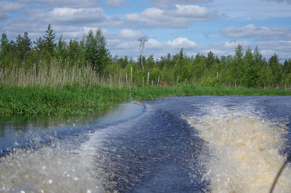 Сегодня у нас запланированы две экскурсии: водная на лодке и автомобильно-пешая, по болоту, то есть, до болота на автомобиле , а по болоту пешком.