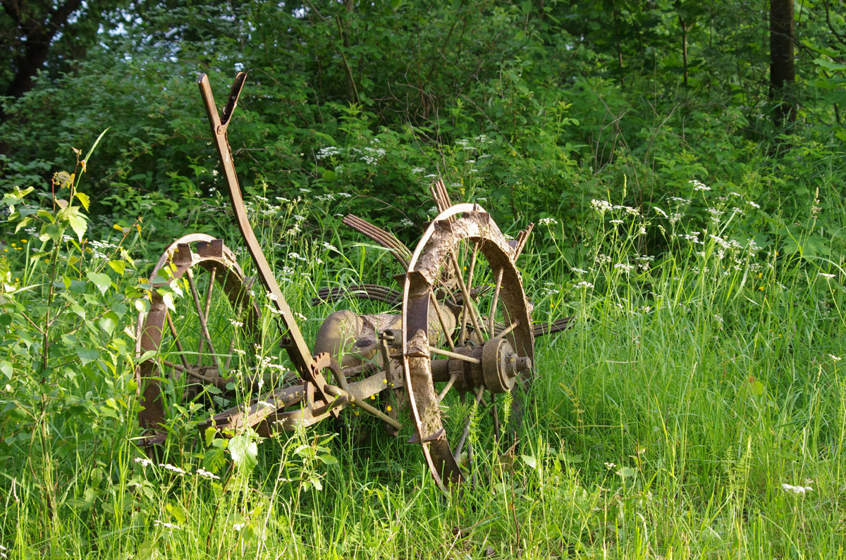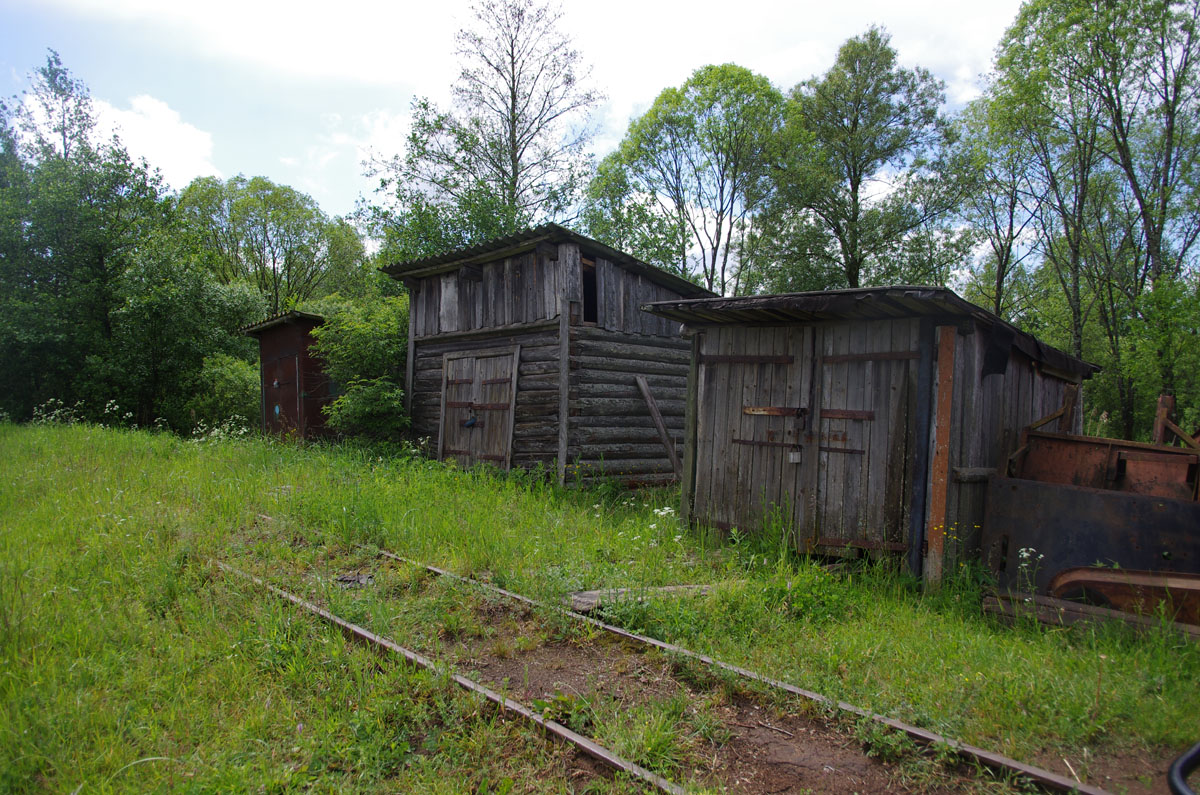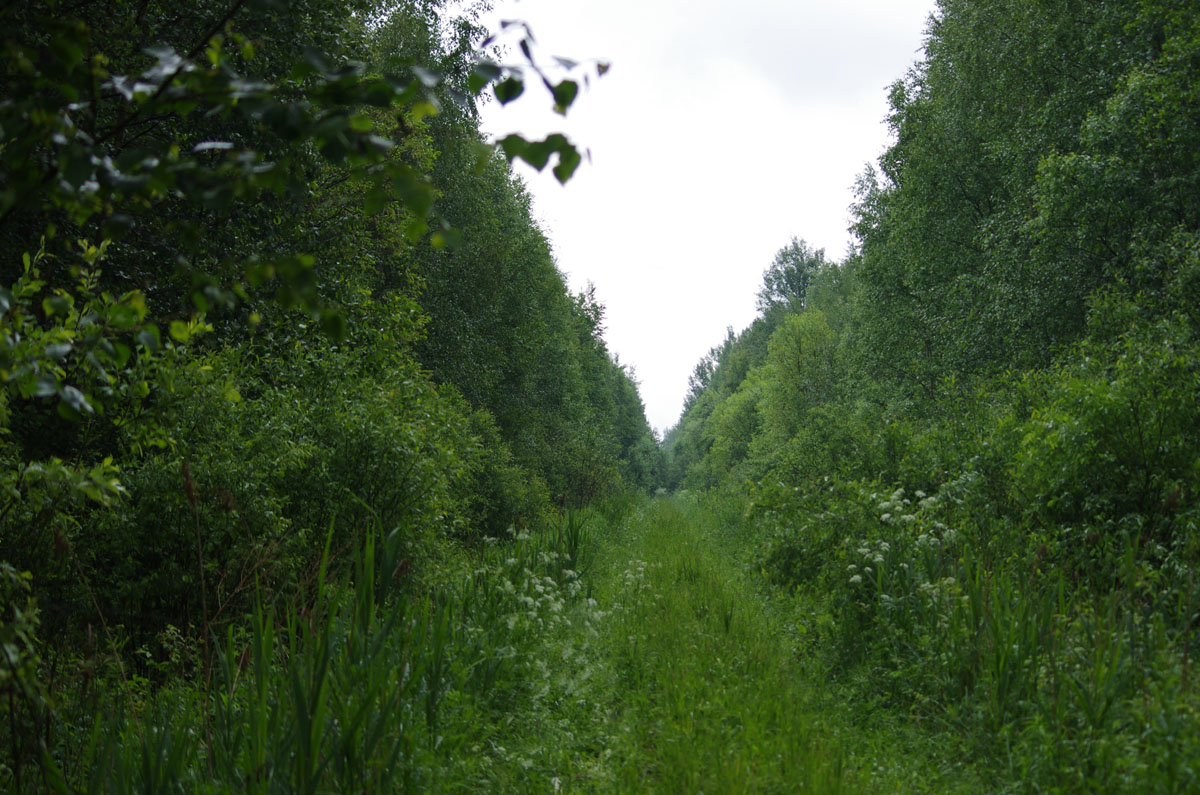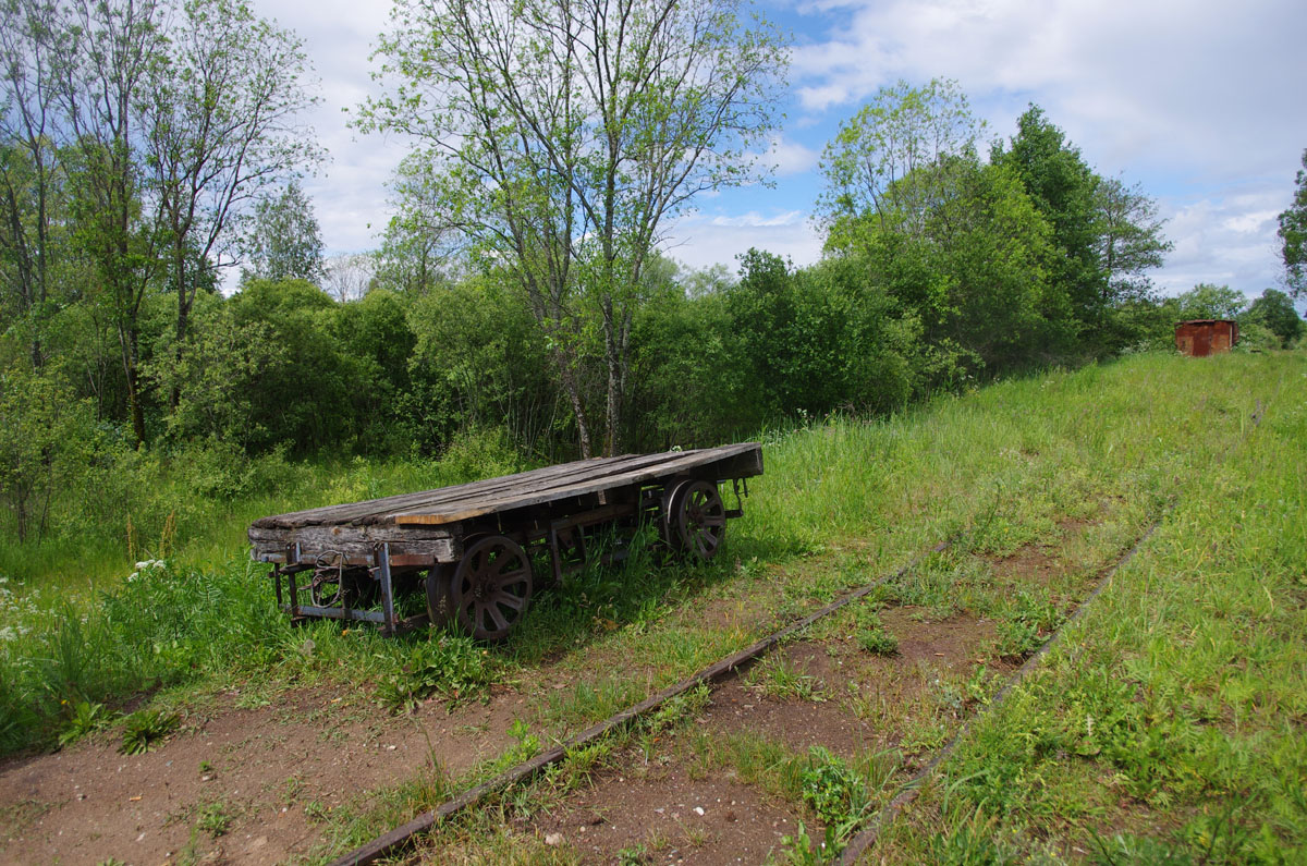 Всю ночь громыхала гроза и шел ливень. Поэтому утренняя экскурсия по узкоколейке не совсем удалась. Отросшая мокрая трава очень мешала движению дрезины. Мотор перегревался, приходилось останавливаться. Я использовала остановки для фотографирования окружающих видов, а наш экскурсовод и водитель (или все же машинист?) Павел — для приведения в порядок дороги.