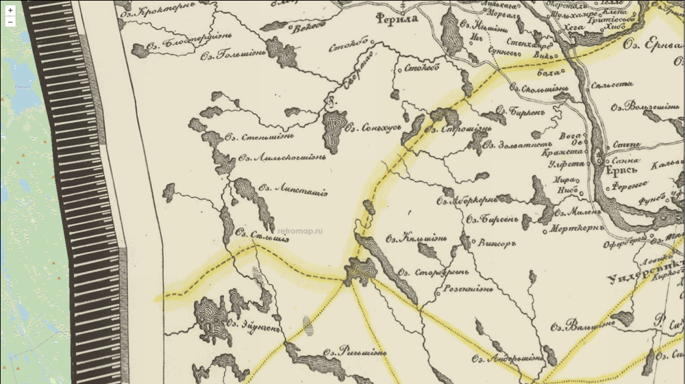 Начнем с наиболее обширной группы работ, в которой сконцентрировались как отдельные успехи, так и многочисленные ошибки и недостатки. Кажется, почти без преувеличения можно сказать, что по такой методологии создавалось не менее 90% широко известных покрытий. Основной отличительной особенностью таких работ является то, что привязка первичного картографического материала (сканов исторических карт) осуществлялась без учета системы координат (СК) исходной карты и ее отличия от современной СК, или без учета проекции, в которой эта карта была составлена, или с использованием контрольных точек привязки, верность которых никак не подтверждалась и даже не оценивалась. Зачастую все эти ошибки присутствуют в таких работах не по отдельности, а «полным списком». Методологически все это выглядит так: берутся сканы листов карты (очень часто — плохого качества), на них находят некоторые объекты, которые, как представляется, можно было бы соотнести с современными (для которых известны современные координаты) и «привязываются» в какой-нибудь современной системе координат (часто берут WGS 84), и проекции попроще (например, меркаторской). Или же осуществляют ту же привязку с использованием координатной сетки, изображенной на карте, полностью отождествляя координаты этой сетки с современными. После чего, полагаясь на возможности современной программы, запускают процесс трансформации, причем в автоматическом режиме, ожидая, что на выходе получится, в целом, тот же растр, но уже имеющий современные координаты.